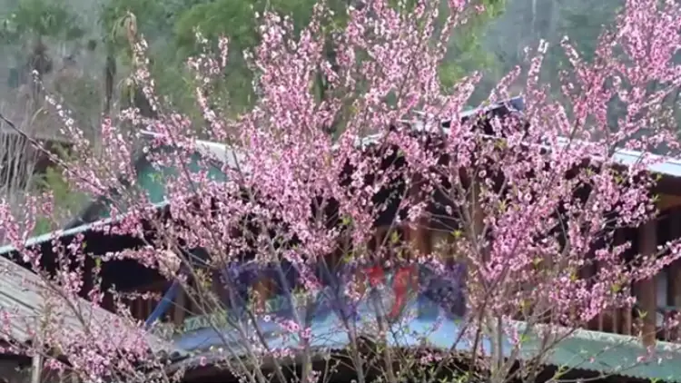 Những ngày giáp Tết Nguyên đán, hoa đào bung nở trên khắp sườn đồi, con đường, trong các ngôi nhà truyền thống của người Mông tại bản du lịch cộng đồng Sin Suối Hồ (Lai Châu) như mời gọi du khách tới tham quan.