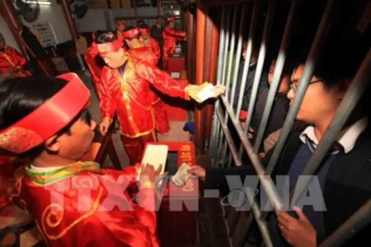 Nghi lễ được đông đảo du khách chờ đón Lễ phát ấn năm 2017 tại Lễ hội đền Trần (Nam Định) bắt đầu sớm từ lúc 5 giờ ngày 15 tháng Giêng âm lịch (ngày 11/2). Nguồn: Báo Tin tức