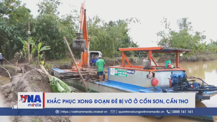 Lực lượng chức năng và người dân phường Bình Thủy (thành phố Cần Thơ) đã cơ bản khắc phục xong sự cố vỡ đê bao tại khu vực Cồn Sơn. Đoạn đê bị vỡ vào rạng sáng 6/11 do ảnh hưởng của đợt triều cường cao nhất lịch sử.