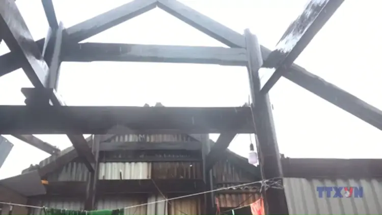 Chiều tối 12/6, mưa kèm lốc xoáy quét qua thôn Trung Tiến, xã Cẩm Trung, huyện Cẩm Xuyên, Hà Tĩnh khiến 32 ngôi nhà bị tốc mái, trong đó 1 ngôi nhà bị sập hoàn toàn.