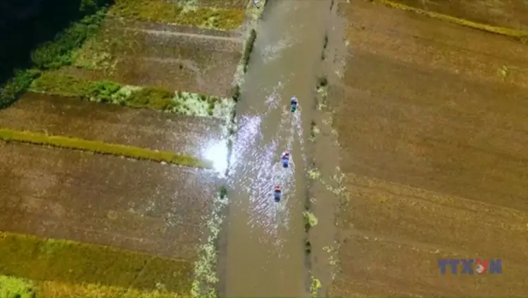 Vào những ngày đầu tháng 6, cánh đồng lúa bên dòng sông Ngô Đồng ở Khu du lịch Tam Cốc - Bích Động, thành phố Hoa Lư, tỉnh Ninh Bình đang vào chính vụ, chín vàng rực rỡ và nổi bật là tạo hình “Cá chép vượt vũ môn” khổng lồ trên cánh đồng rộng gần 10.000 m2. Hình ảnh người dân tấp nập vào vụ thu hoạch càng tạo thêm nhiều nét sinh động thu hút khách du lịch đến tham quan tại nơi đây.