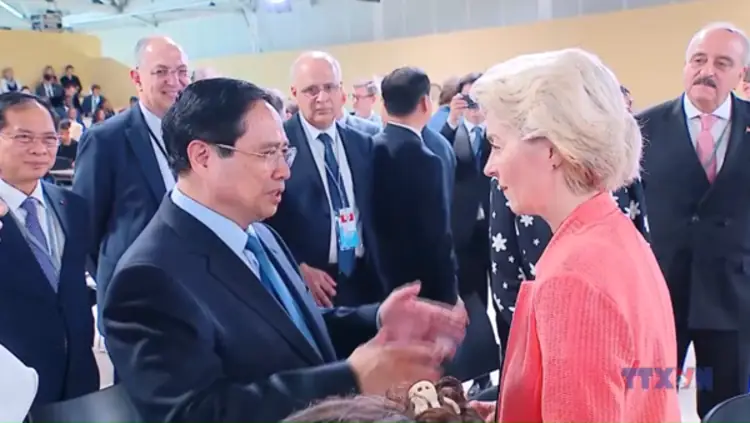 Ngày 09/6, nhân dịp tham dự Hội nghị Cấp cao lần thứ 3 của Liên hợp quốc về Đại dương tại thành phố Nice, Cộng hoà Pháp, Thủ tướng Chính phủ Phạm Minh Chính đã có các cuộc gặp và làm việc với Chủ tịch Hội đồng Châu Âu Antonio Costa; và có cuộc gặp ngắn với Chủ tịch Ủy ban Châu Âu Ursula von der Leyen.
