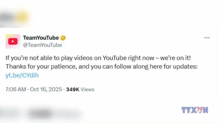 YouTube bị gián đoạn dịch vụ tại nhiều nơi trên thế giới
